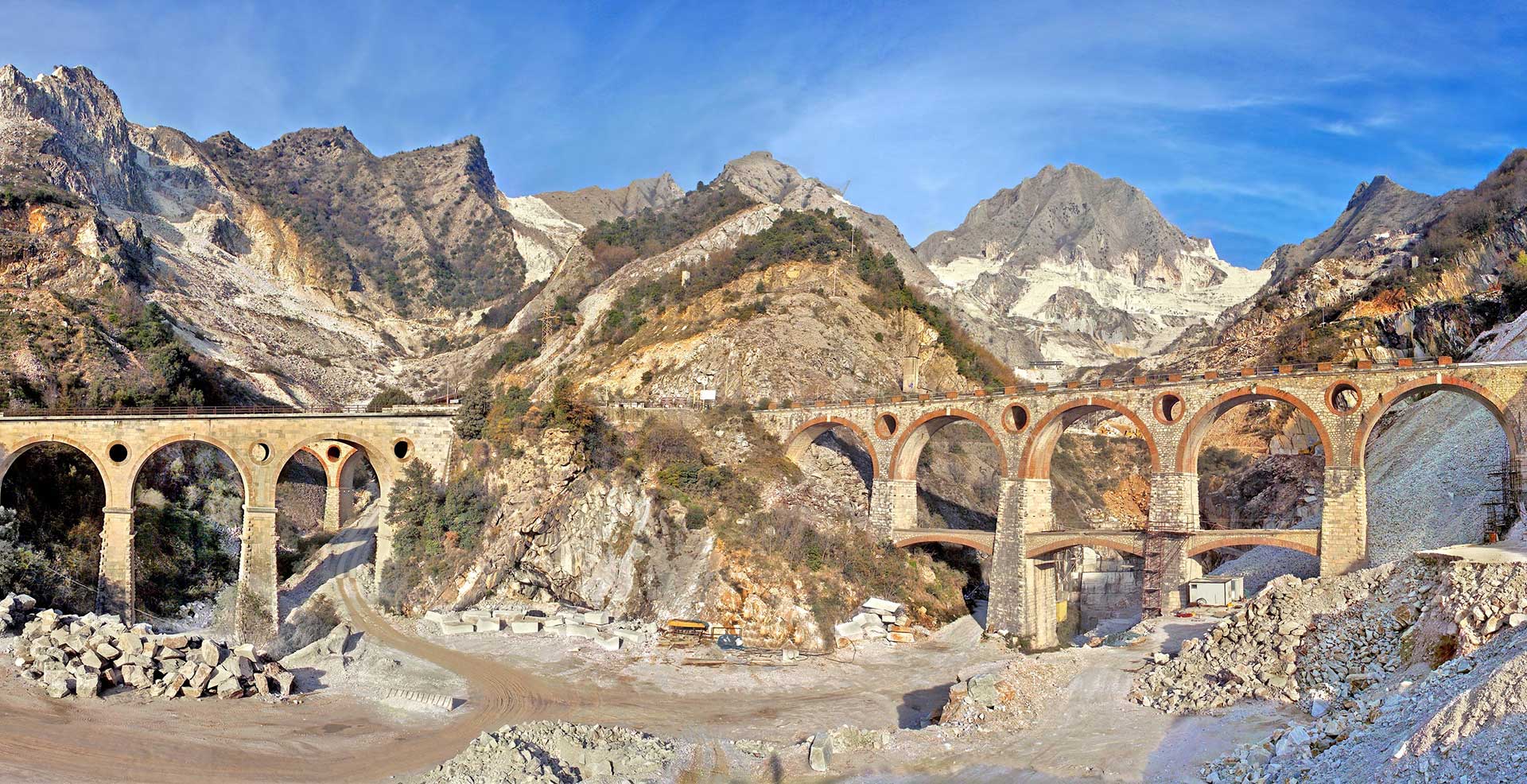 Carrara Mermerleri üç ayrı havzada üretiliyor. Unutulmaz Torano, Fantiscritti ve Colannata arasında görkemli köprüleri ile muhteşem bir güzellik sunan eski demiryolu ve yine mermer blok indirme rotası Vara, kayaların içine oyulmuş tünelleri ile mermer ocaklarını keşfe giden turistlerin büyük ilgisini çekmektedir. Antik Roma döneminden bu yana çalıştığı bilinen Carrara ocaklarının çevresinde bulunan pek çok yazıt ve eser bugün mermer müzesinde sergilenmektedir.